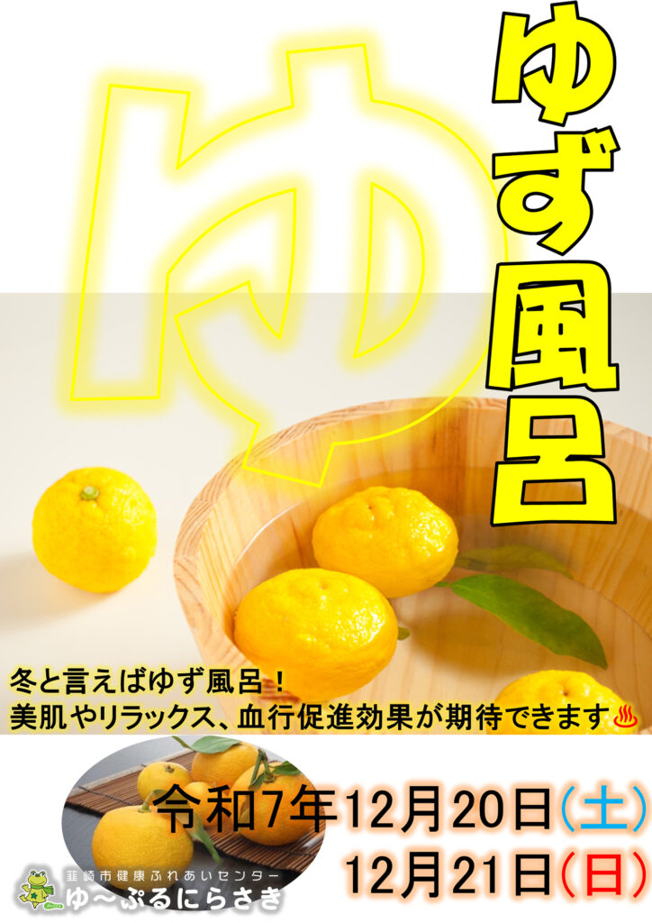ゆ~ぷるにらさきでは、12月20日(土)~12月21日(日)に “ゆず風呂” を開催します!