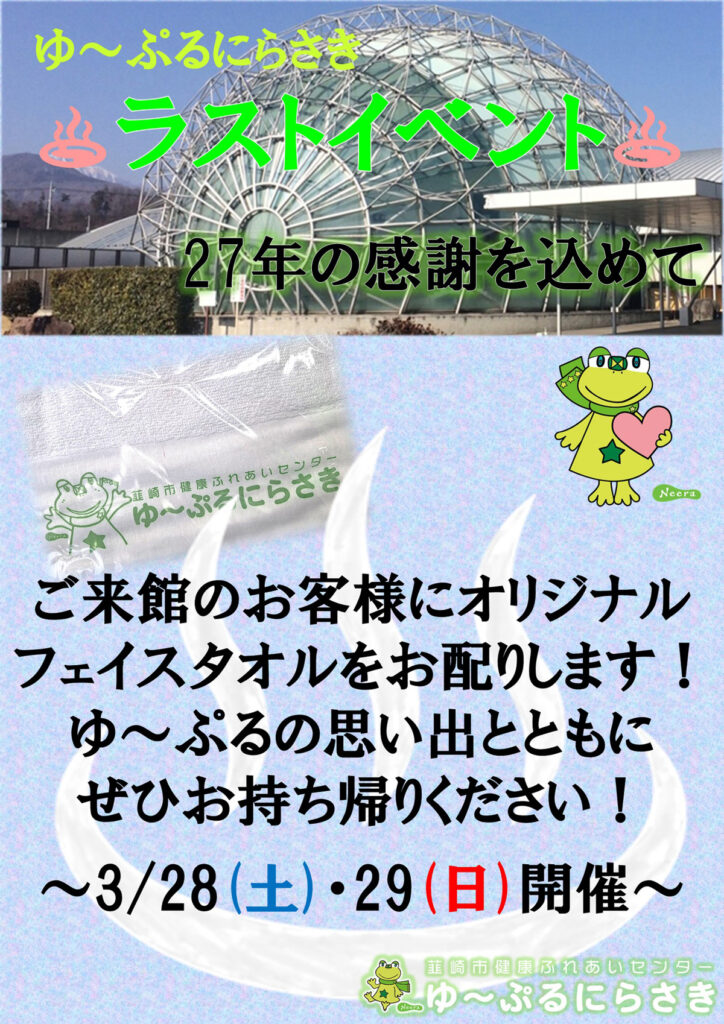 ゆ~ぷるにらさき ラストイベント 3月28日(土)・29日(日)のお知らせ!